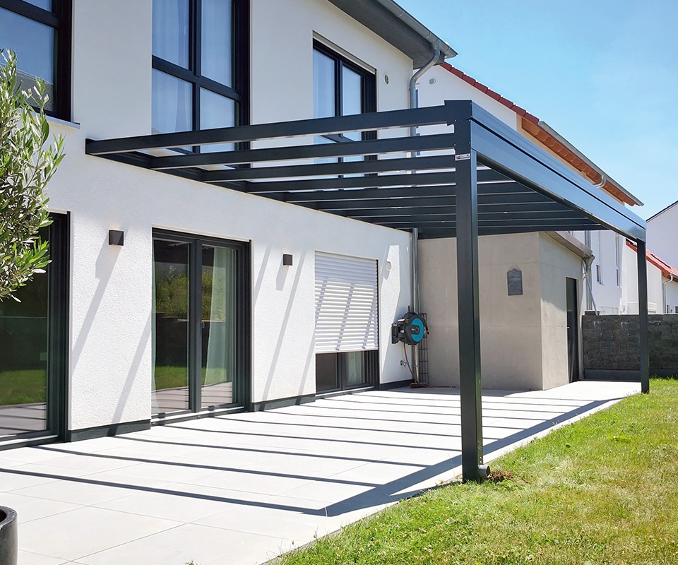 Mit unseren Terassenüberdachungen genießen Sie trockene und geschützte Momente an jedem Tag.